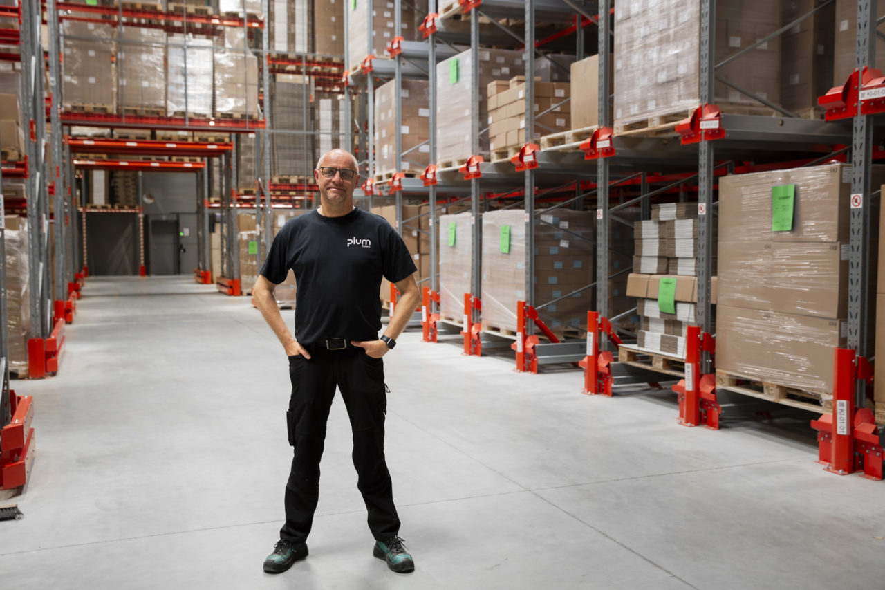 – Vi har valt att bygga helt nya lagerhallar, då våra gamla inte längre räckte till. Vi växer mycket och därför var Radioshuttle™ viktig för oss, berättar Bjarne Ryttergaard Andersen, Warehouse Manager på Plum Safety.