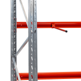 EABs pallställ levereras med galvaniserade gavlar. Bärbalkar och övriga tillbehör lackeras orange med en slitstark pulverfärg.